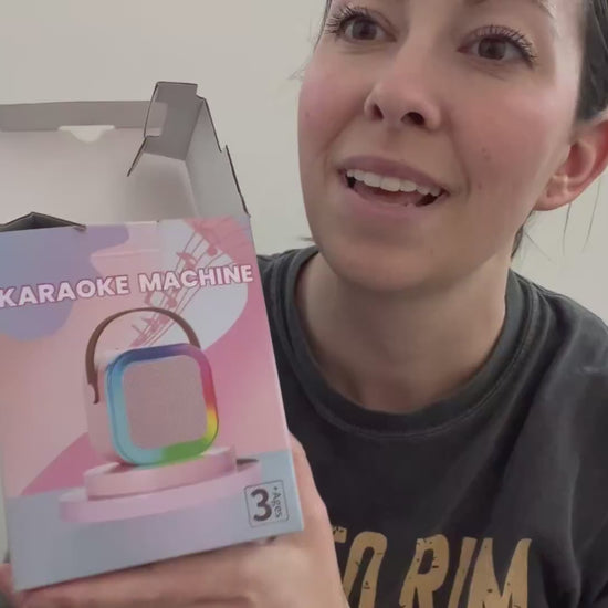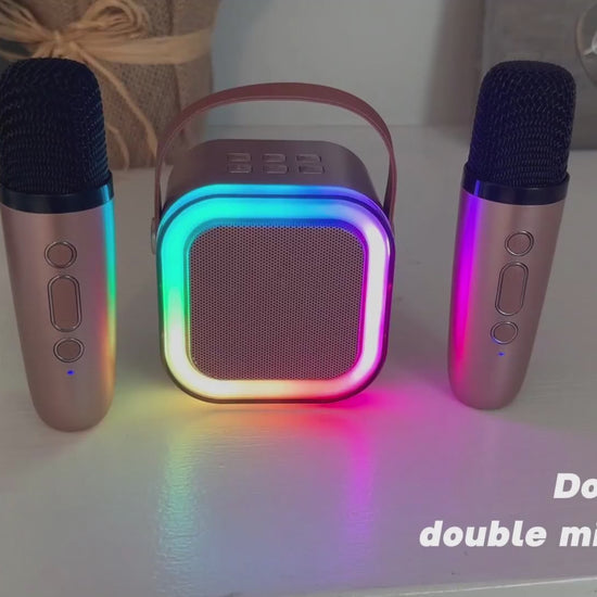 - Product:Â Mini Kids Karaoke Machine â Portable Bluetooth Speaker With 2 Wireless Mics & Party Lights